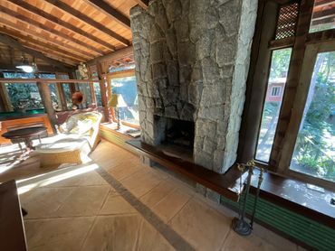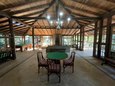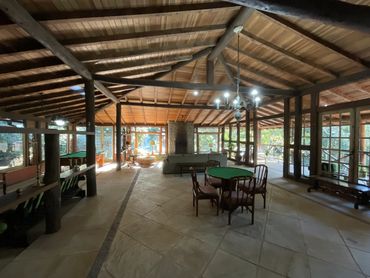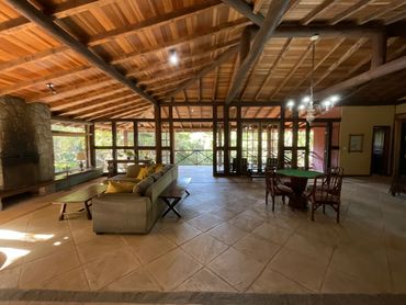 Equipada com churrasqueira, fogão à lenha, forno de pizza à lenha, Mesas e cadeiras.